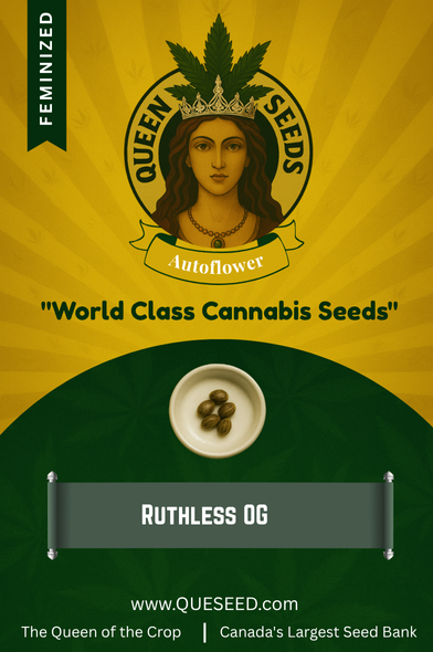 Ruthless OG Feminized Marijuana Seeds is a balanced hybrid with unknown parentage, with a THC content of 17–22% and a CBD content of 0.52–0.82%. It has a smooth blend that delivers a mix of uplifting and relaxing effects. Anticipate hints of pine and citrus flavours with a gassy aftertaste.